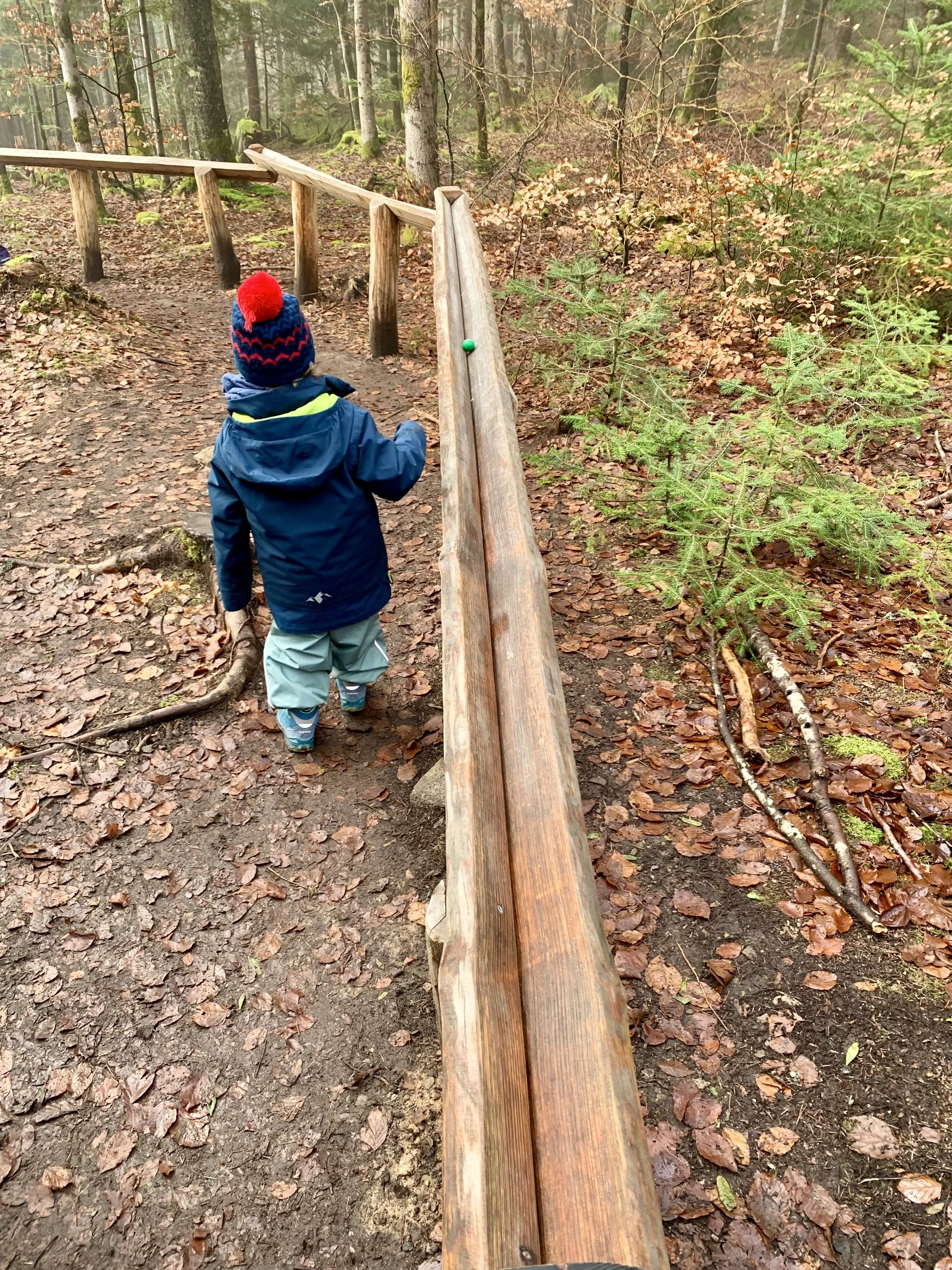 Toller Waldweg mit vielen, schönen Kugelbahnen. Hier laufen alle mit Spaß. Alter 2-12 Jahre. Wichtig: 1€ Münze für Kugelautomat nötig